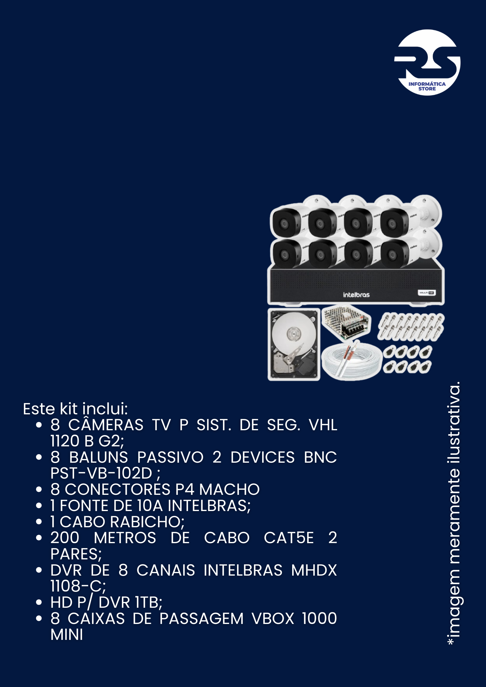 KIT COMPLETO COM 8 CAMERAS CFTV